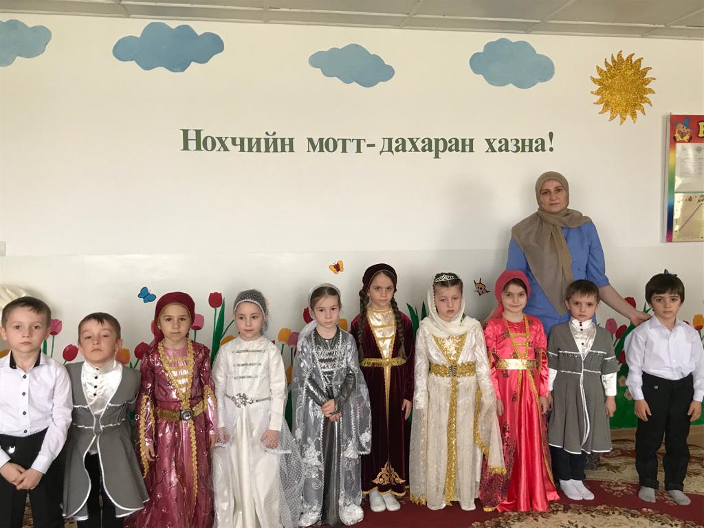 и воспитания любви к родному языку и формирования уважительного отношения к другим языкам и культуре. Язык является важным элементом культуры, основной формой проявления национального и личностного самосознания. «25-г1а апрель - Ненан метан де!» Утренник открыли с исполнения чеченского гимна. Дети всех возрастных групп читали стихи на чеченском языке